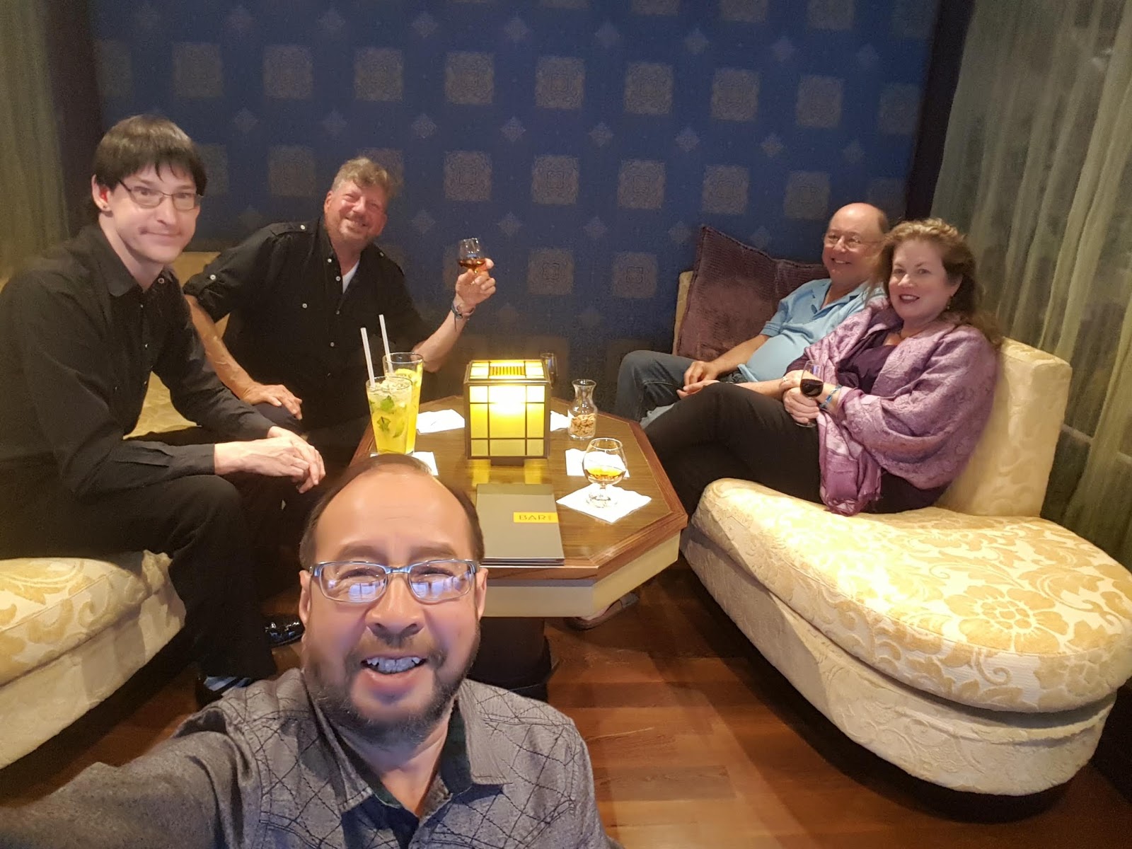 | Our first night, we scored a table at the very rear of the ship with the wake visible from our window! |